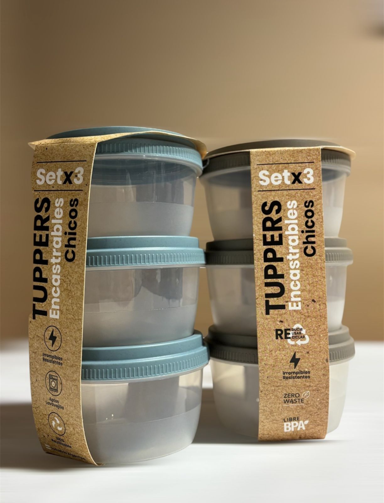 Tupper encastrable chico con tapa bamboo Ideal para llevar tu comida a todos lados. Super resistentes. Set x3