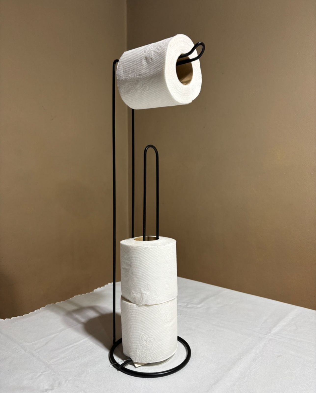Material de acero inoxidable color negro. Capacidad 4 rollos. Medidas (54cm alto x 15cm diametro base)